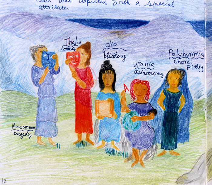 This is a drawing of five of them, from my daughter’s homeschooling Ancient Greece main lesson block.