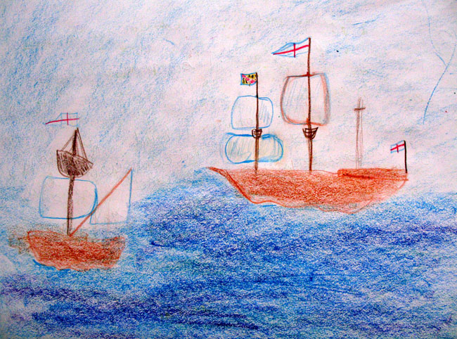 Shortly afterward George Calvert died, so his younger son Leonard set sail in the Ark and the Dove and a party that included settlers and adventurers, several gentlemen, a handful of women, a number of indentured servants, and three priests. The group was a mixture of Catholics and Protestants, as it was Calvert’s intention to set up a religious-tolerant community. When they arrived at the mouth of the Potomac in March 1634, they were kindly greeted by the surprised yet helpful Yaocomico inhabitants, who, tiring of attacks by their Susquehannah neighbors, were fortuitously planning a move west. They granted the newcomers their land, along with houses, fields, and useful botanical, zoological, and culinary tips. The settlers renamed the territory Terra Maria, in honor of Queen Henrietta Maria (daughter of King Henri IV of France). Terra Maria: Mary-Land.